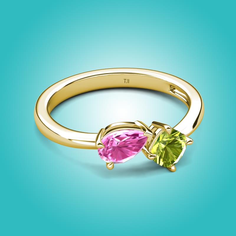 1.55 ctw Pink Sapphire Pear Shape 7x5 mm & Peridot Cushion Shape 5.00 mm with Prong setting Two Stone Duo Women Engagement Ring in 14K Yellow Gold More Details ...
