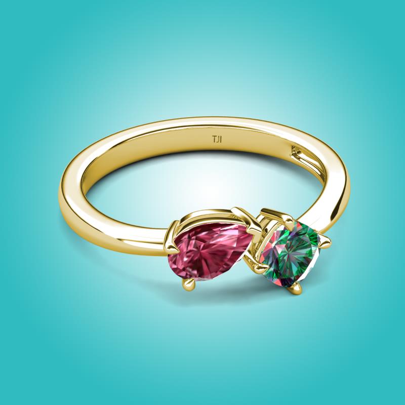 1.51 ctw Pink Tourmaline Pear Shape 7x5 mm & Lab Created Alexandrite Cushion Shape 5.00 mm with Prong setting Two Stone Duo Women Engagement Ring in 18K Yellow Gold More Details ...