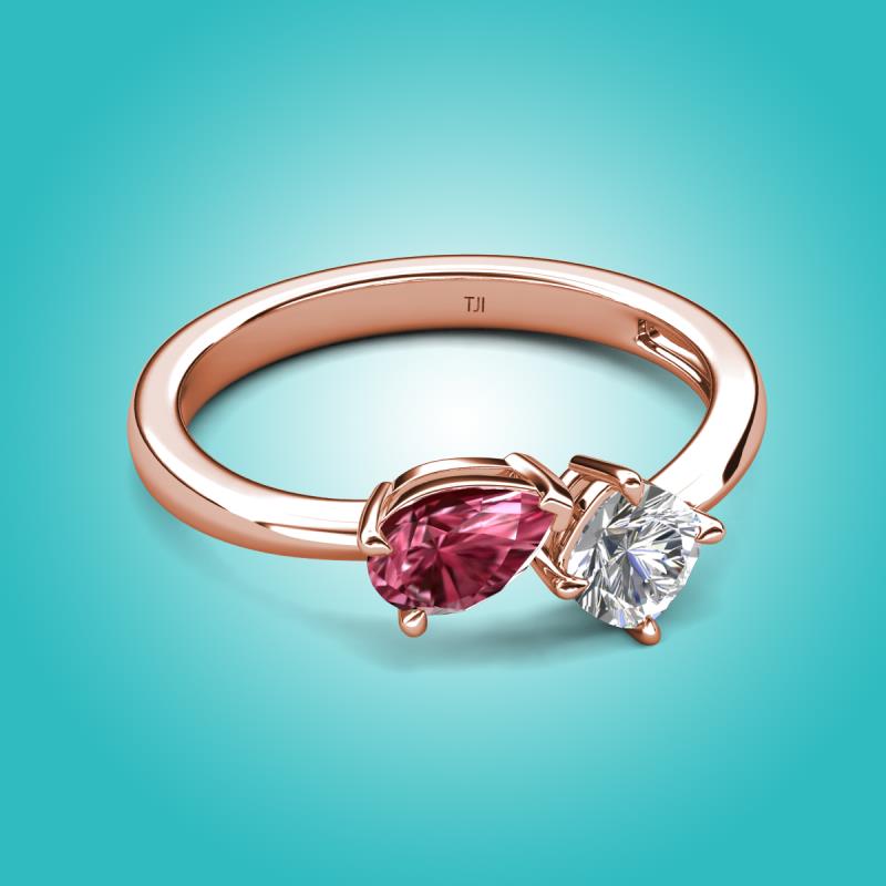 1.20 ctw Pink Tourmaline Pear Shape 7x5 mm & Natural Diamond Cushion Shape 5.00 mm with Prong setting Two Stone Duo Women Engagement Ring in 14K Rose Gold More Details ...