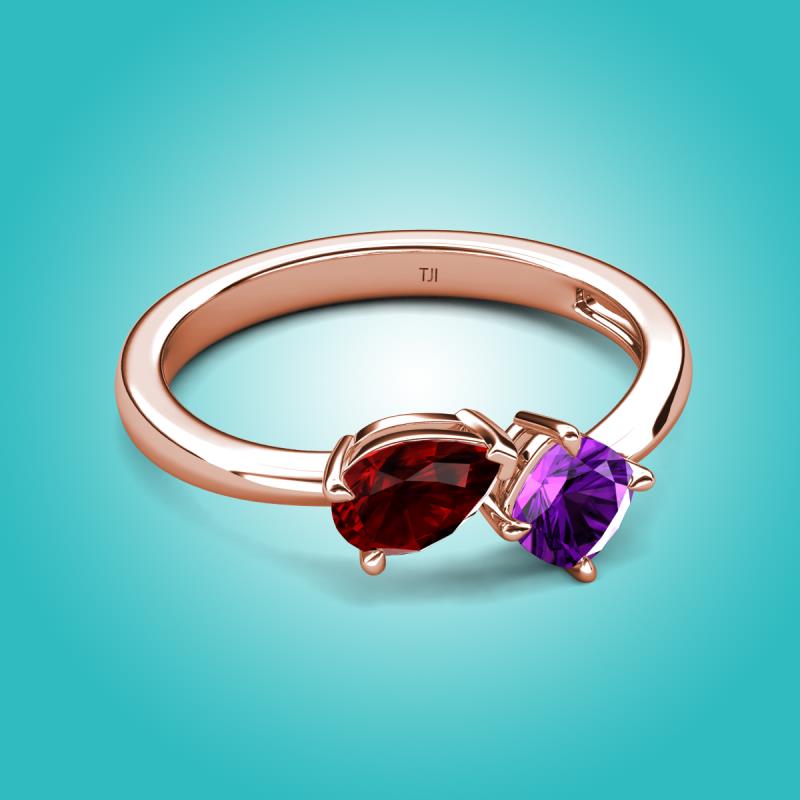 1.40 ctw Red Garnet Pear Shape 7x5 mm & Amethyst Cushion Shape 5.00 mm with Prong setting Two Stone Duo Women Engagement Ring in 18K Rose Gold More Details ...