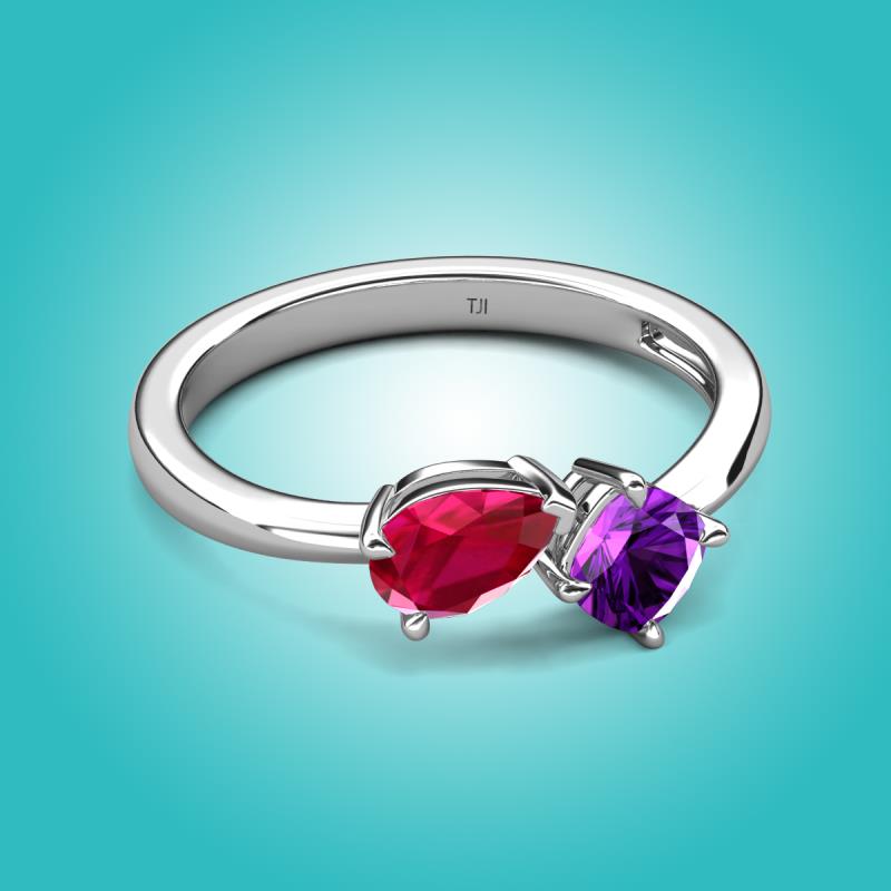 1.45 ctw Ruby Pear Shape 7x5 mm & Amethyst Cushion Shape 5.00 mm with Prong setting Two Stone Duo Women Engagement Ring in 14K White Gold More Details ...