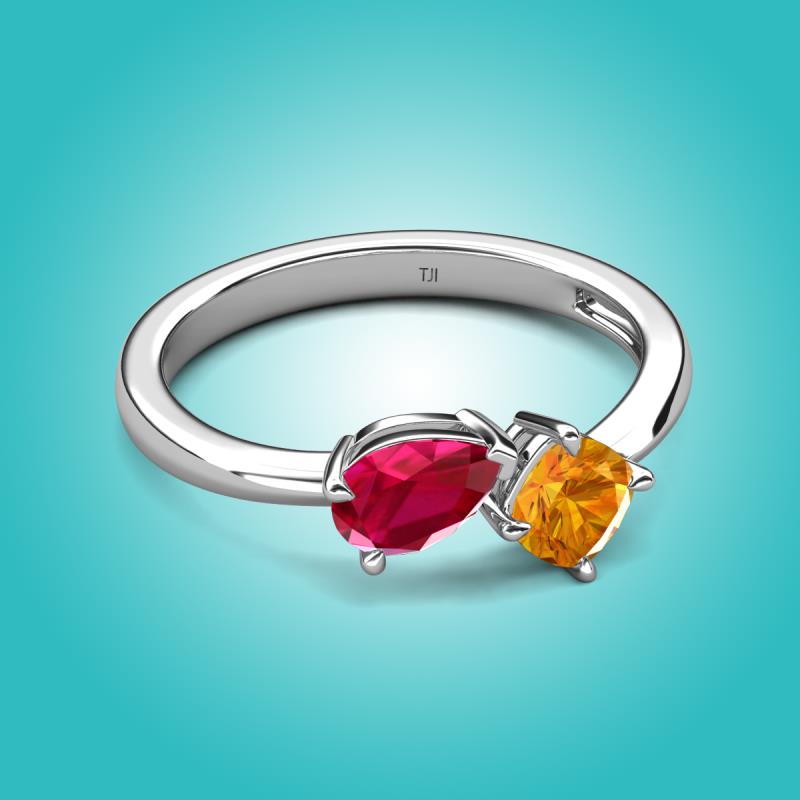 1.45 ctw Ruby Pear Shape 7x5 mm & Citrine Cushion Shape 5.00 mm with Prong setting Two Stone Duo Women Engagement Ring in Platinum More Details ...