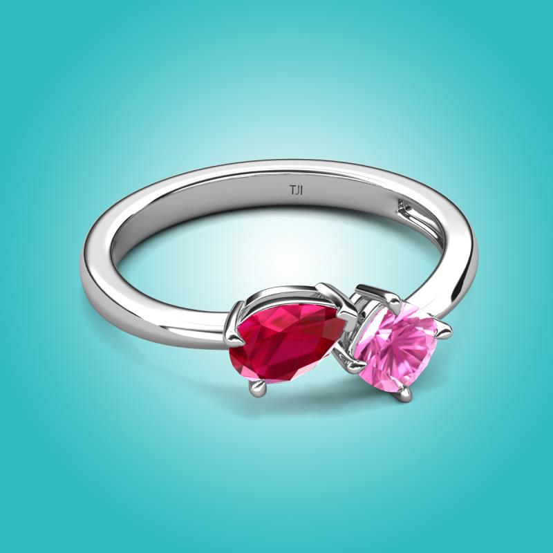 1.76 ctw Ruby Pear Shape 7x5 mm & Lab Created Pink Sapphire Cushion Shape 5.00 mm with Prong setting Two Stone Duo Women Engagement Ring in 14K White Gold More Details ...