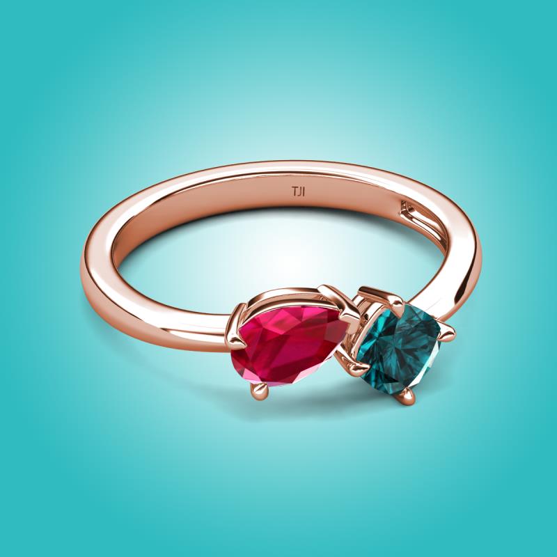 1.70 ctw Ruby Pear Shape 7x5 mm & London Blue Topaz Cushion Shape 5.00 mm with Prong setting Two Stone Duo Women Engagement Ring in 18K Rose Gold More Details ...