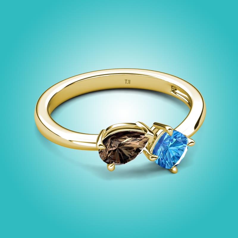 1.40 ctw Smoky Quartz Pear Shape 7x5 mm & Blue Topaz Cushion Shape 5.00 mm with Prong setting Two Stone Duo Women Engagement Ring in 14K Yellow Gold More Details ...