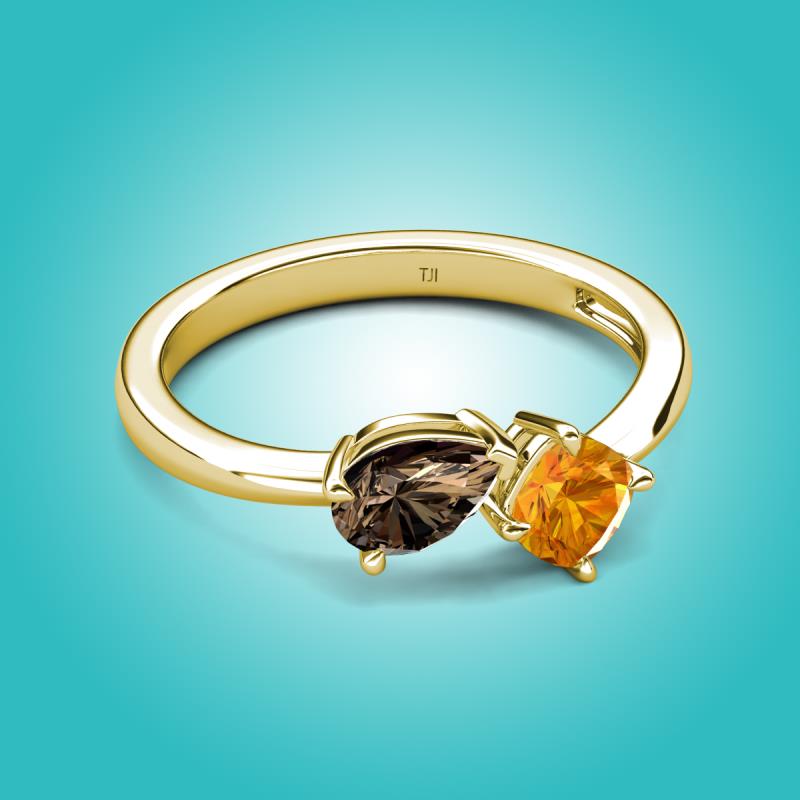 1.15 ctw Smoky Quartz Pear Shape 7x5 mm & Citrine Cushion Shape 5.00 mm with Prong setting Two Stone Duo Women Engagement Ring in 18K Yellow Gold More Details ...