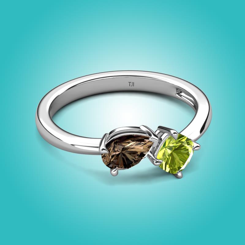1.30 ctw Smoky Quartz Pear Shape 7x5 mm & Peridot Cushion Shape 5.00 mm with Prong setting Two Stone Duo Women Engagement Ring in 14K White Gold More Details ...