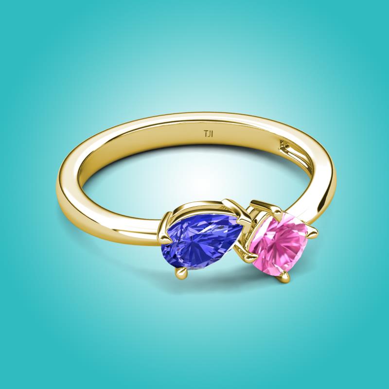 1.56 ctw Tanzanite Pear Shape 7x5 mm & Lab Created Pink Sapphire Cushion Shape 5.00 mm with Prong setting Two Stone Duo Women Engagement Ring in 14K Yellow Gold More Details ...
