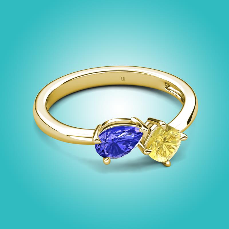 1.56 ctw Tanzanite Pear Shape 7x5 mm & Lab Created Yellow Sapphire Cushion Shape 5.00 mm with Prong setting Two Stone Duo Women Engagement Ring in 14K Yellow Gold More Details ...