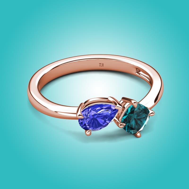 1.50 ctw Tanzanite Pear Shape 7x5 mm & London Blue Topaz Cushion Shape 5.00 mm with Prong setting Two Stone Duo Women Engagement Ring in 18K Rose Gold More Details ...
