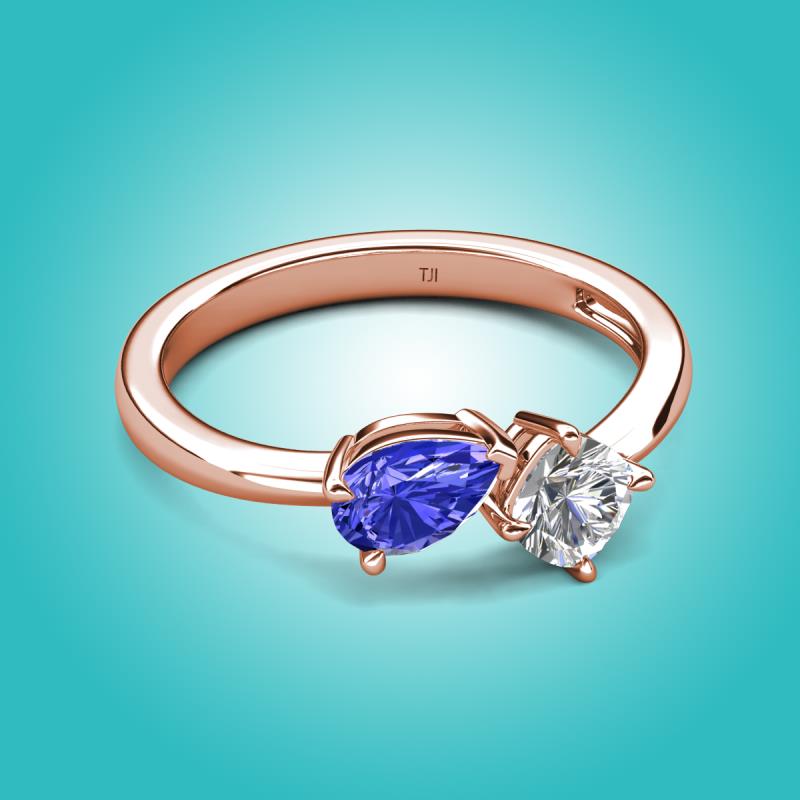 1.25 ctw Tanzanite Pear Shape 7x5 mm & Natural Diamond Cushion Shape 5.00 mm with Prong setting Two Stone Duo Women Engagement Ring in 14K Rose Gold More Details ...