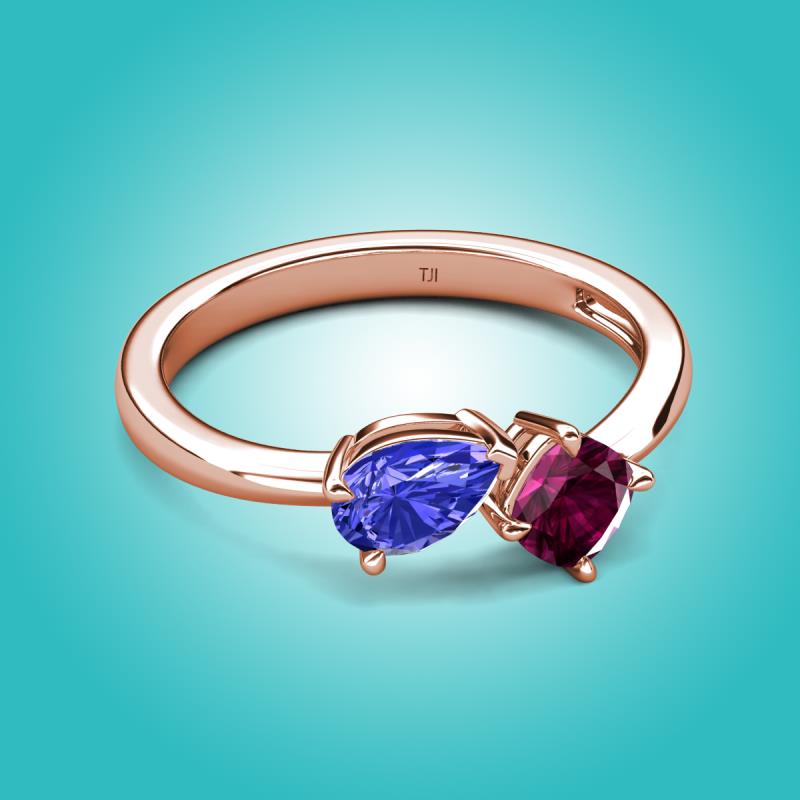 1.37 ctw Tanzanite Pear Shape 7x5 mm & Rhodolite Garnet Cushion Shape 5.00 mm with Prong setting Two Stone Duo Women Engagement Ring in 14K Rose Gold More Details ...