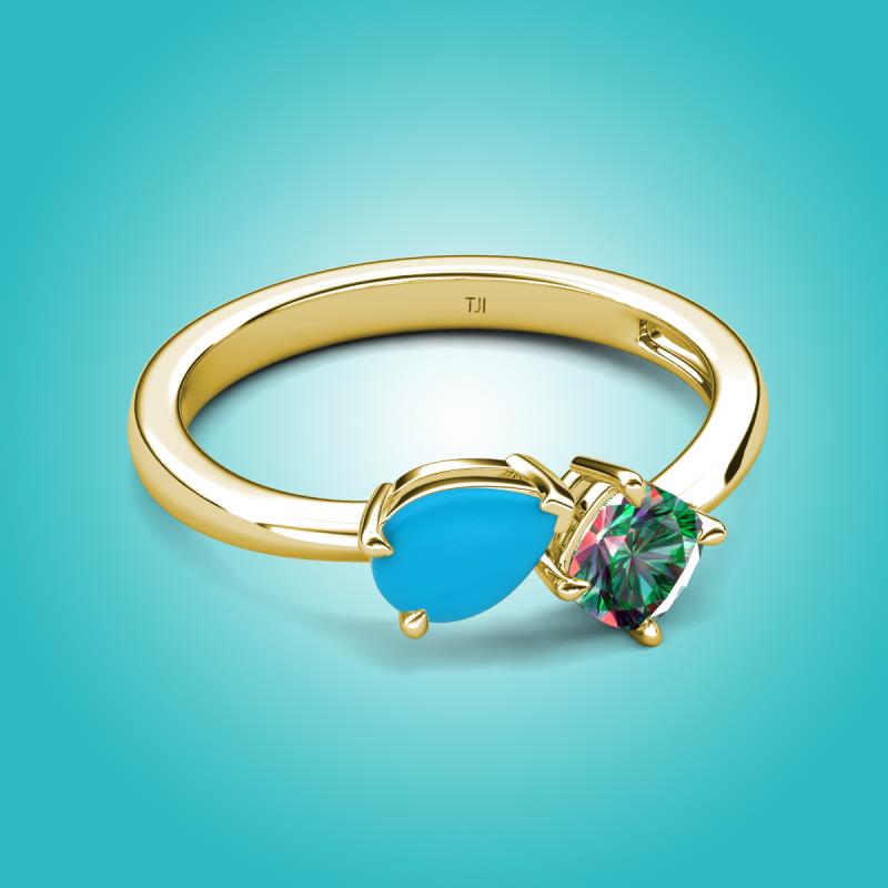 1.16 ctw Turquoise Pear Shape 7x5 mm & Lab Created Alexandrite Cushion Shape 5.00 mm with Prong setting Two Stone Duo Women Engagement Ring in 14K Yellow Gold More Details ...