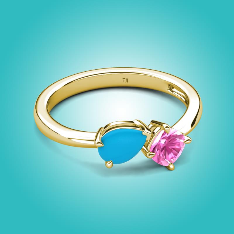1.16 ctw Turquoise Pear Shape 7x5 mm & Lab Created Pink Sapphire Cushion Shape 5.00 mm with Prong setting Two Stone Duo Women Engagement Ring in 18K Yellow Gold More Details ...
