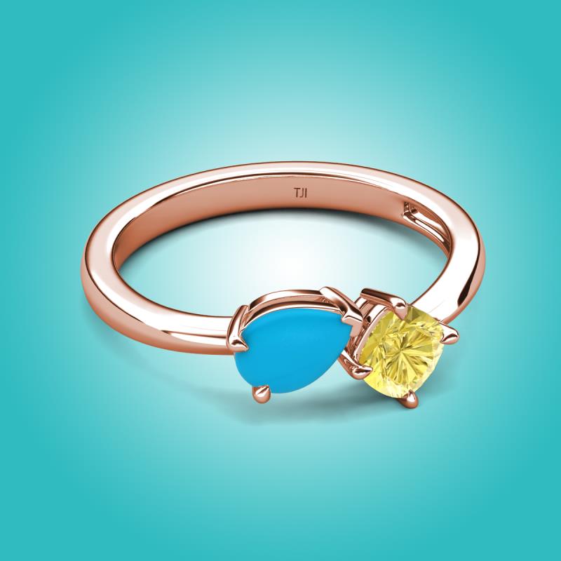 1.16 ctw Turquoise Pear Shape 7x5 mm & Lab Created Yellow Sapphire Cushion Shape 5.00 mm with Prong setting Two Stone Duo Women Engagement Ring in 18K Rose Gold More Details ...
