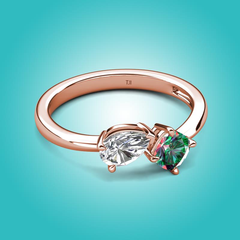 1.71 ctw White Sapphire Pear Shape 7x5 mm & Lab Created Alexandrite Cushion Shape 5.00 mm with Prong setting Two Stone Duo Women Engagement Ring in 18K Rose Gold More Details ...