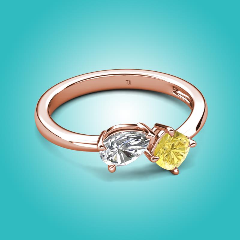 1.71 ctw White Sapphire Pear Shape 7x5 mm & Lab Created Yellow Sapphire Cushion Shape 5.00 mm with Prong setting Two Stone Duo Women Engagement Ring in 14K Rose Gold More Details ...
