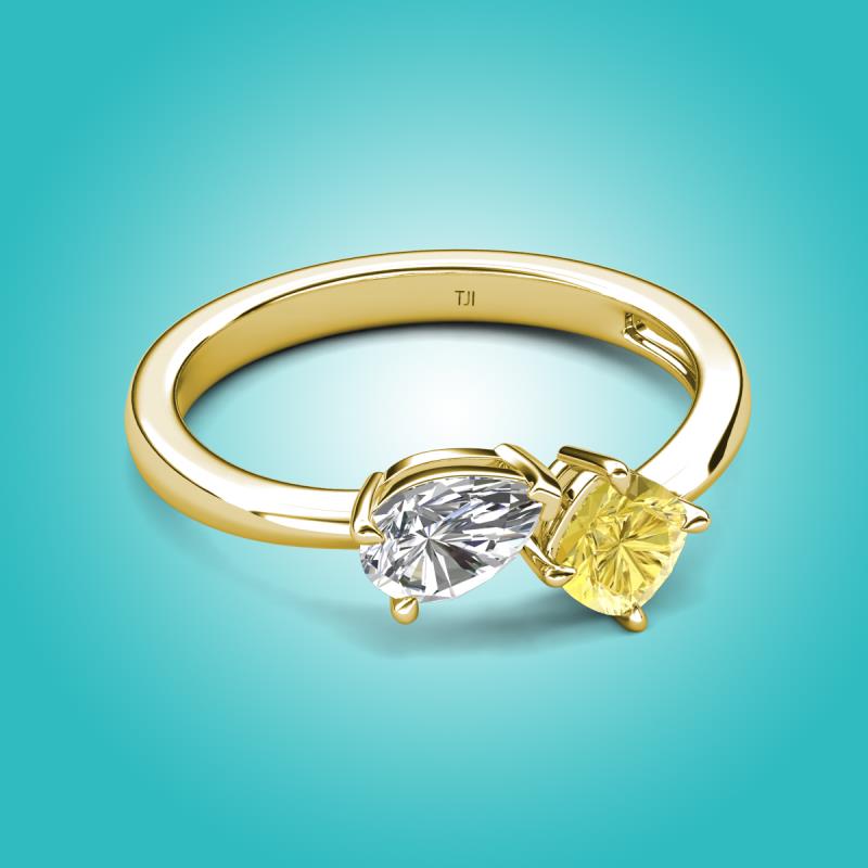 1.71 ctw White Sapphire Pear Shape 7x5 mm & Lab Created Yellow Sapphire Cushion Shape 5.00 mm with Prong setting Two Stone Duo Women Engagement Ring in 14K Yellow Gold More Details ...