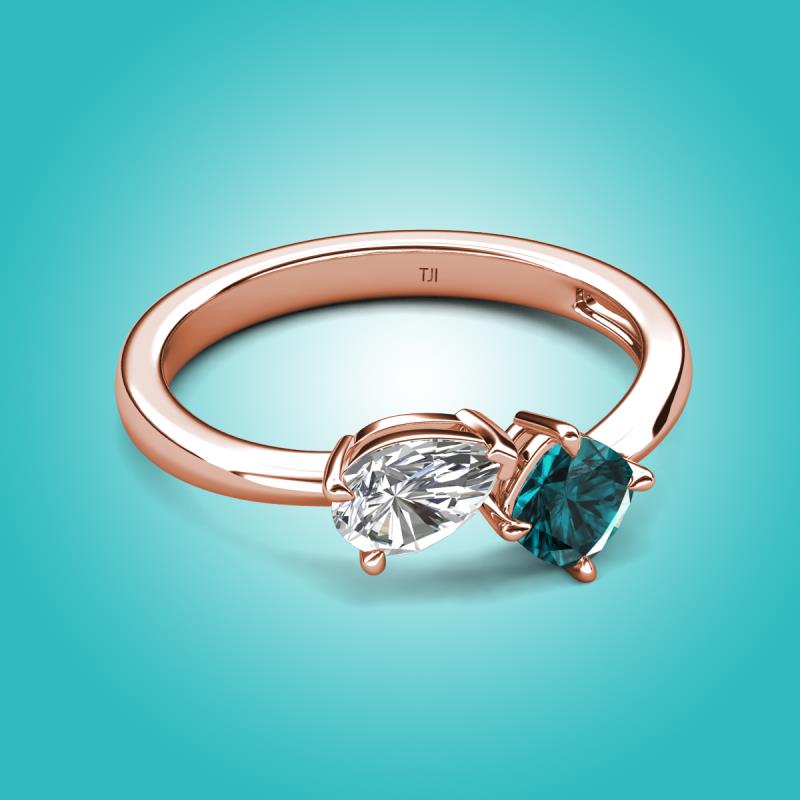 1.65 ctw White Sapphire Pear Shape 7x5 mm & London Blue Topaz Cushion Shape 5.00 mm with Prong setting Two Stone Duo Women Engagement Ring in 18K Rose Gold More Details ...
