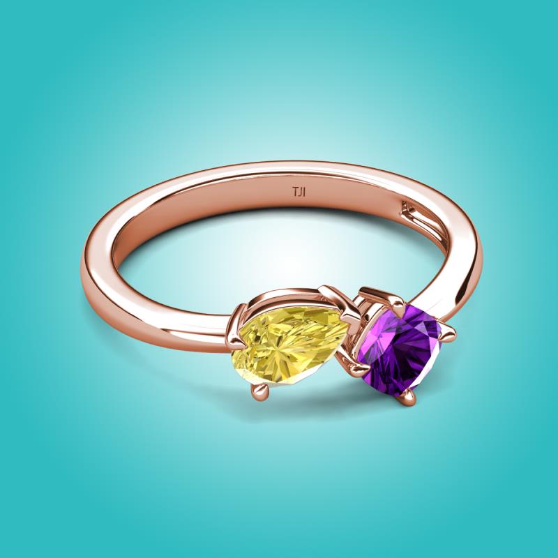 1.40 ctw Yellow Sapphire Pear Shape 7x5 mm & Amethyst Cushion Shape 5.00 mm with Prong setting Two Stone Duo Women Engagement Ring in 18K Rose Gold More Details ...
