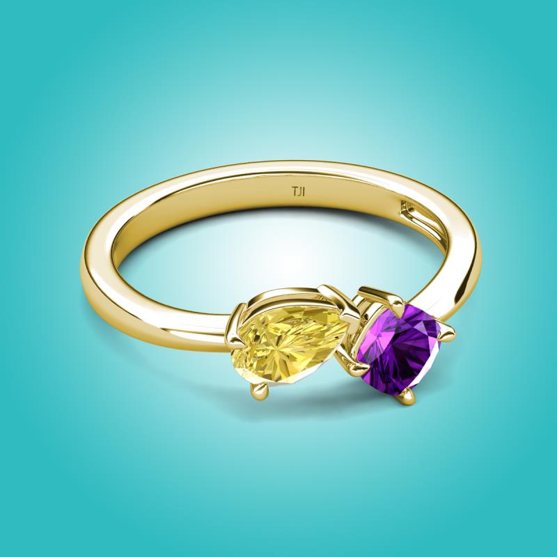1.40 ctw Yellow Sapphire Pear Shape 7x5 mm & Amethyst Cushion Shape 5.00 mm with Prong setting Two Stone Duo Women Engagement Ring in 18K Yellow Gold More Details ...