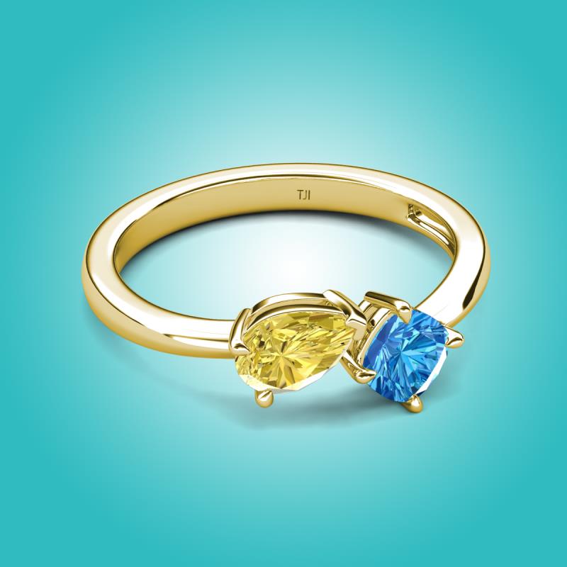 1.65 ctw Yellow Sapphire Pear Shape 7x5 mm & Blue Topaz Cushion Shape 5.00 mm with Prong setting Two Stone Duo Women Engagement Ring in 14K Yellow Gold More Details ...