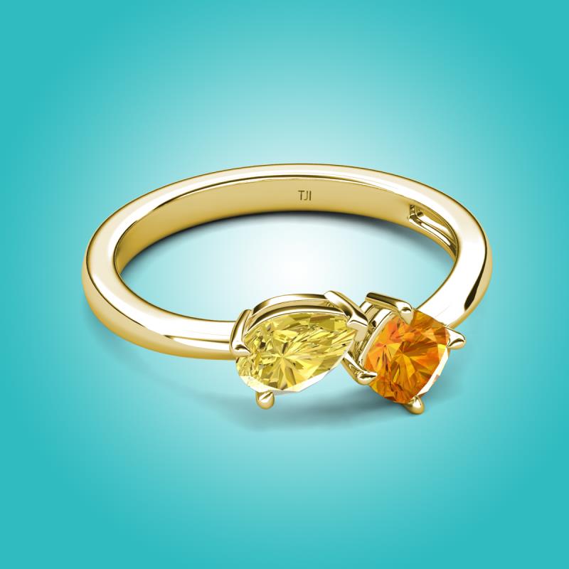 1.40 ctw Yellow Sapphire Pear Shape 7x5 mm & Citrine Cushion Shape 5.00 mm with Prong setting Two Stone Duo Women Engagement Ring in 18K Yellow Gold More Details ...