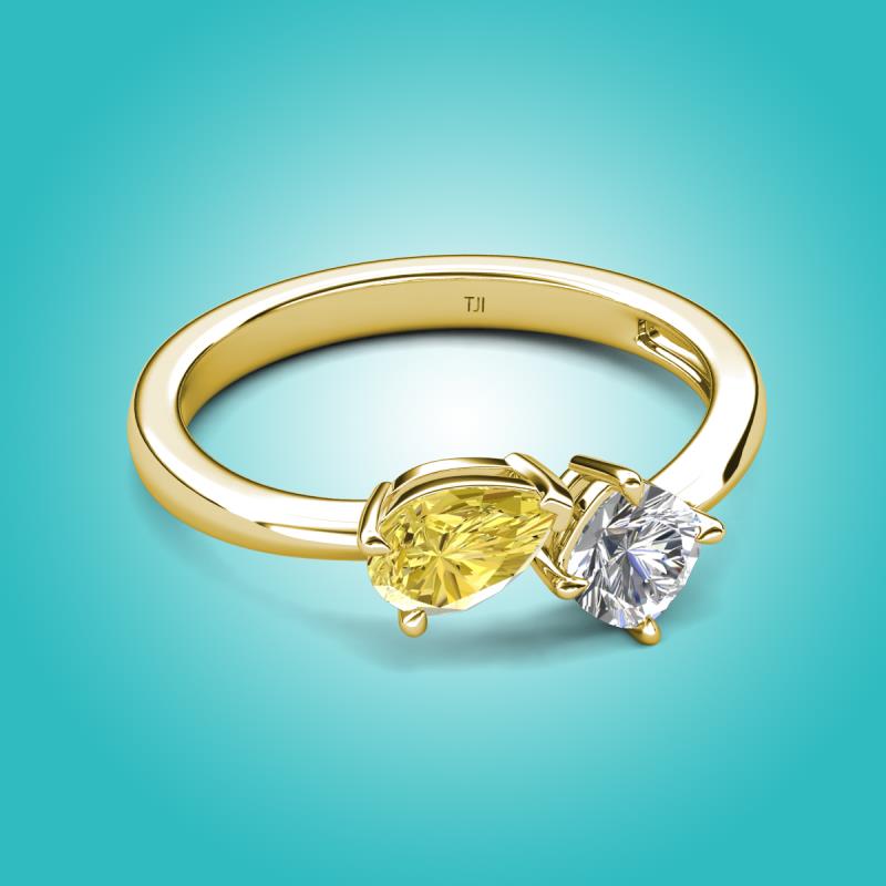 1.47 ctw Yellow Sapphire Pear Shape 7x5 mm & Moissanite Cushion Shape 5.00 mm with Prong setting Two Stone Duo Women Engagement Ring in 14K Yellow Gold More Details ...