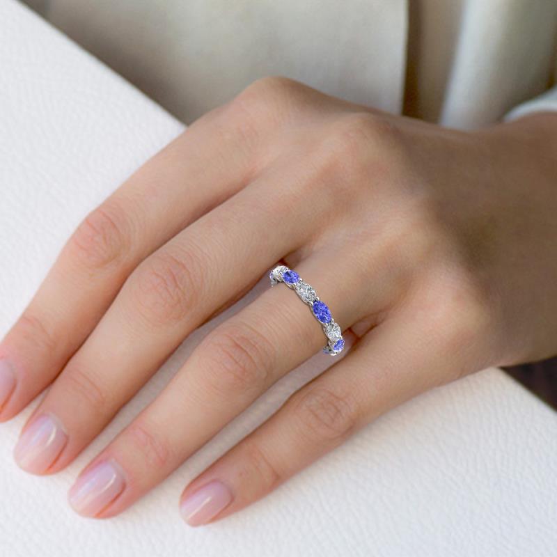 Oval Diamond and Tanzanite 3.76 ctw set in gorgeous drape like basket setting eternity stackable ring 10K White Gold More Details ...
