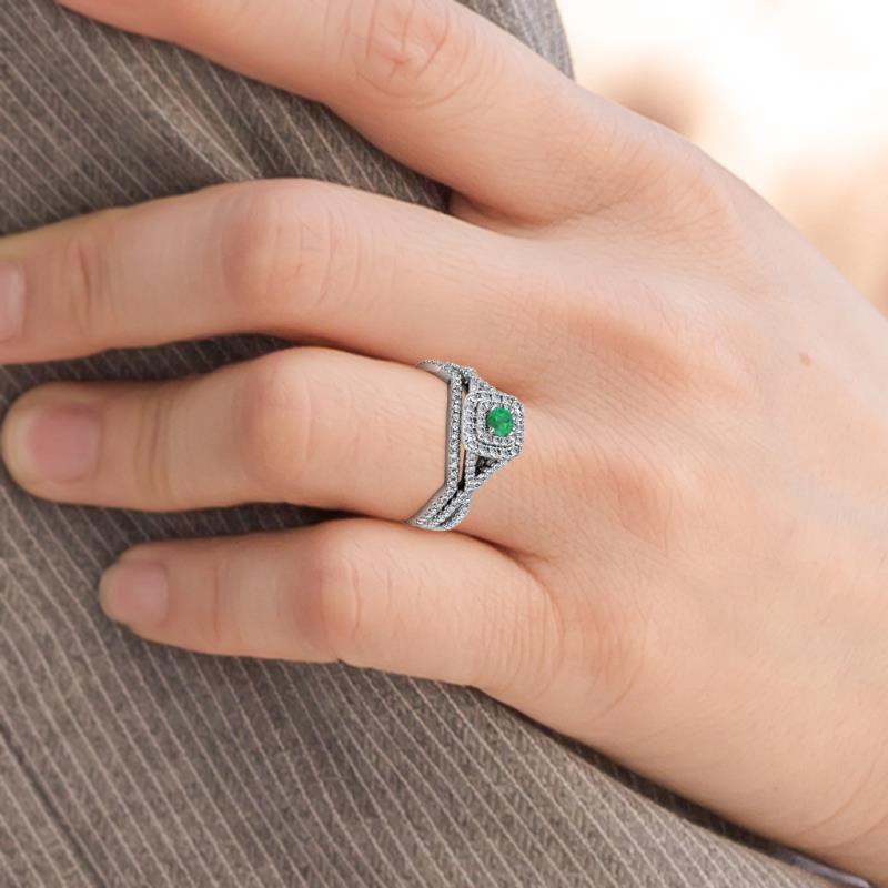 0.60 ctw Emerald (3.80 mm) Women Infinity Halo Engagement Ring & Wedding Band in Platinum. More Details ...