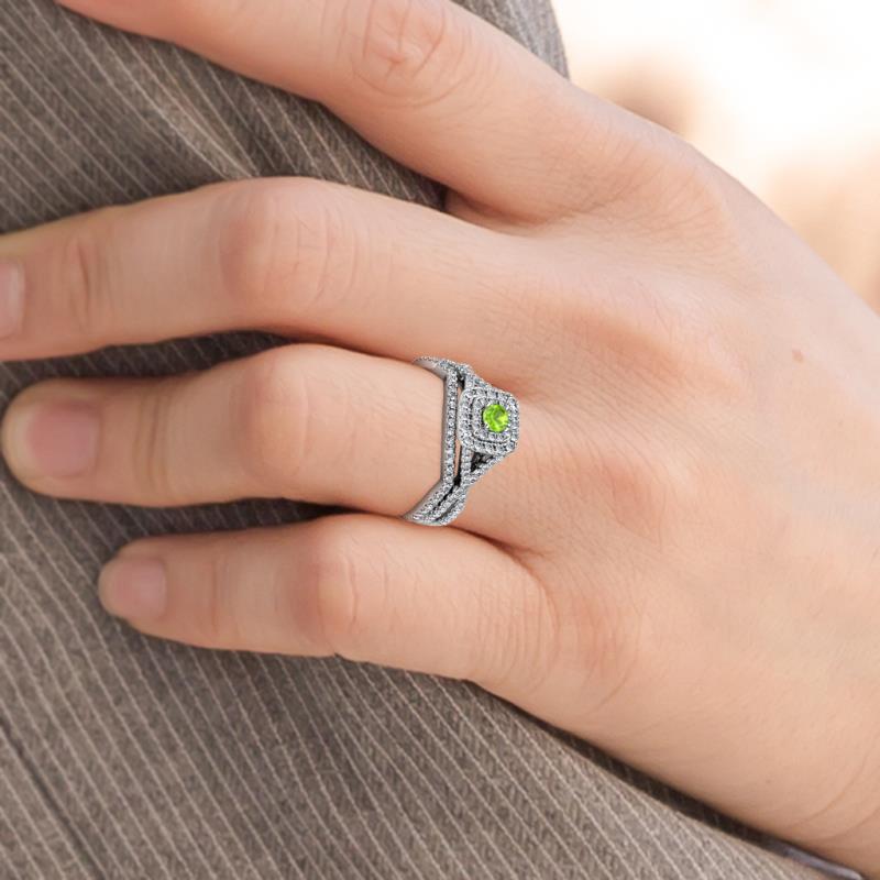 0.65 ctw Peridot (3.80 mm) Women Infinity Halo Engagement Ring & Wedding Band in 18K White Gold. More Details ...