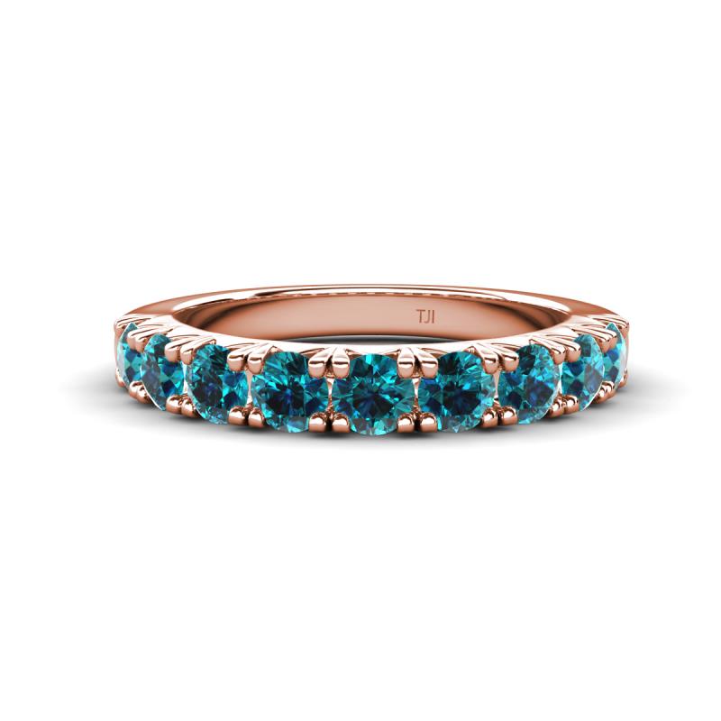 0.90 ctw Blue Diamond (3.00 mm) 9 Stone Wedding Band in 10K Rose Gold More Details ...