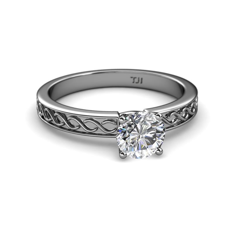 This Infinity GIA Certified Round Diamond Solitaire Engagement Ring features interwined strands of metal forming infinity symbols representing limitless love.