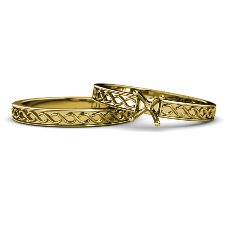 Four Prong Semi Mount Infinity Solitaire Engagement Ring Setting & Matching Band 18K Yellow Gold More Details ...
