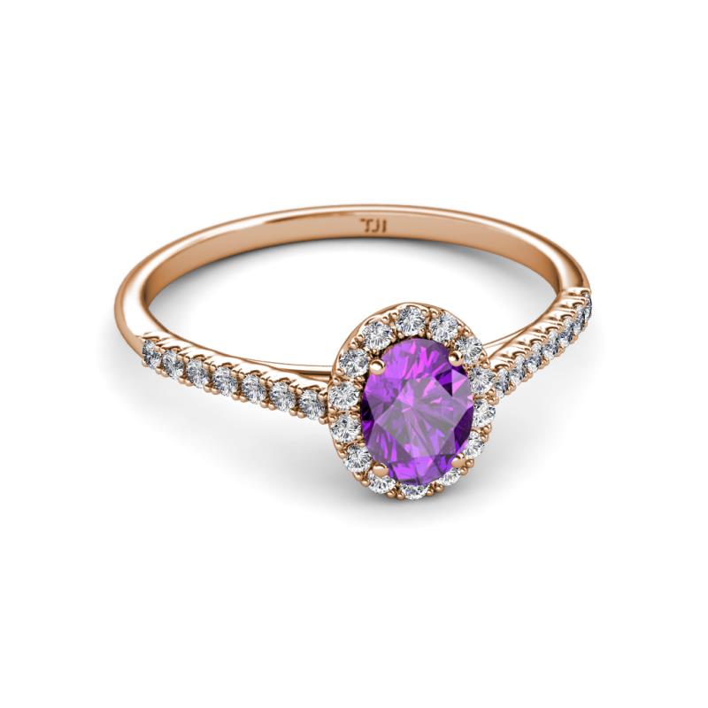 7x5 mm Oval Amethyst and Lab Grown Diamond Halo Engagement Ring 1.14 ctw in 18K Rose Gold. More Details ...
