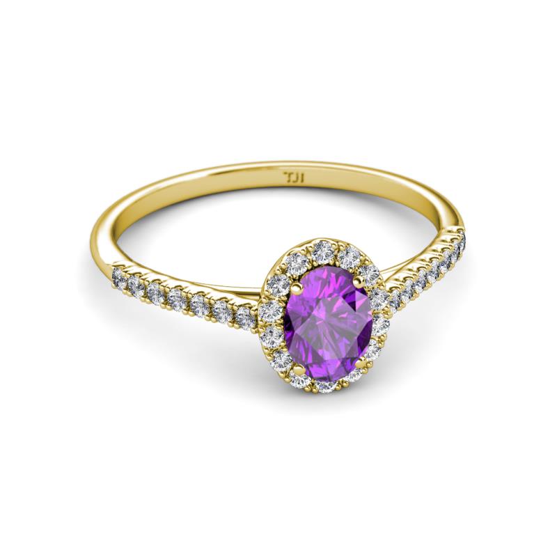 7x5 mm Oval Amethyst and Lab Grown Diamond Halo Engagement Ring 1.14 ctw in 18K Yellow Gold. More Details ...