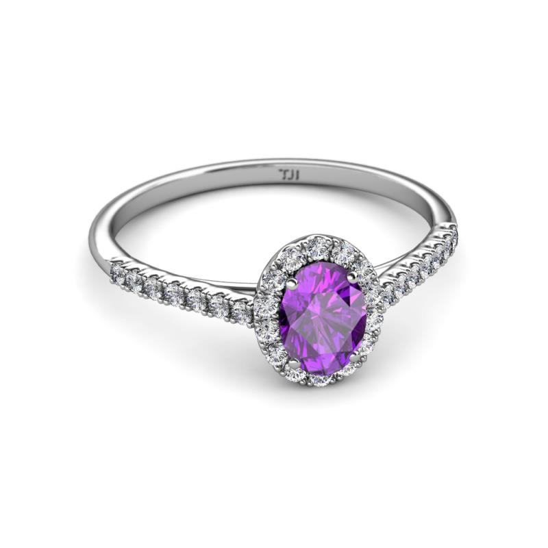 7x5 mm Oval Amethyst and Lab Grown Diamond Halo Engagement Ring 1.14 ctw in Platinum. More Details ...