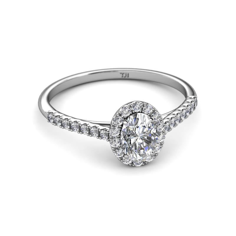 7x5 mm Oval Diamond Halo Engagement Ring (VS2-SI1, F-G) 1.17 cttw in 18K White Gold. More Details ...