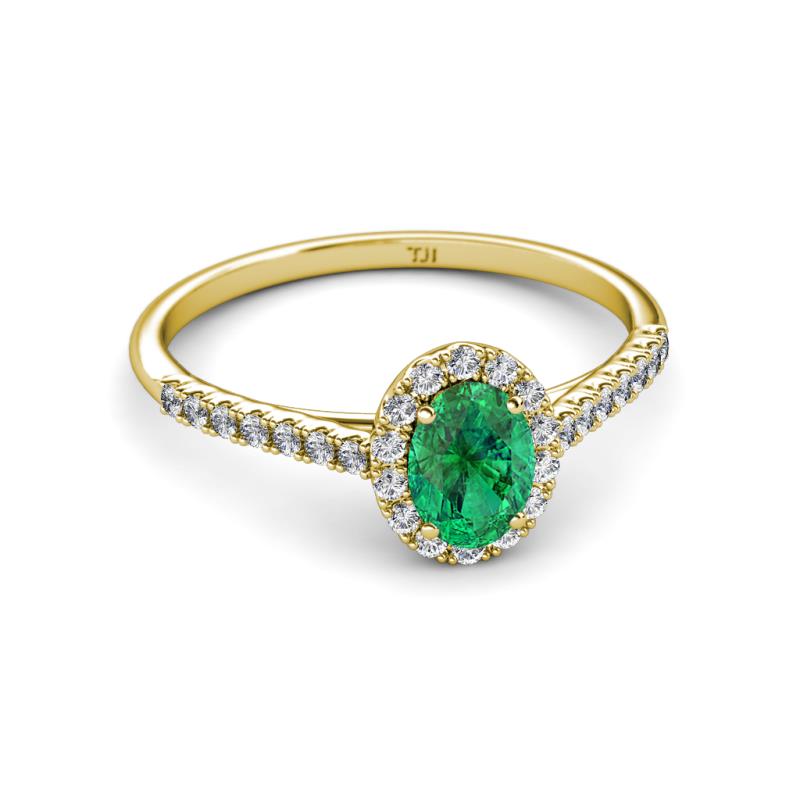 7x5 mm Oval Emerald and Lab Grown Diamond Halo Engagement Ring 1.22 ctw in 14K Yellow Gold. More Details ...