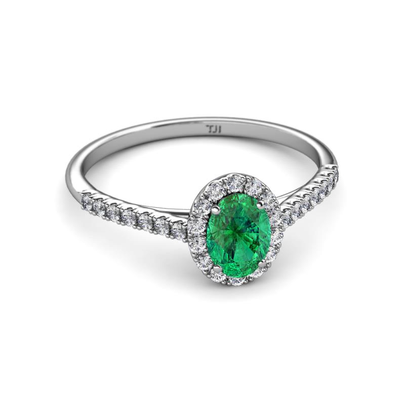 7x5 mm Oval Emerald and Lab Grown Diamond Halo Engagement Ring 1.22 ctw in Platinum. More Details ...