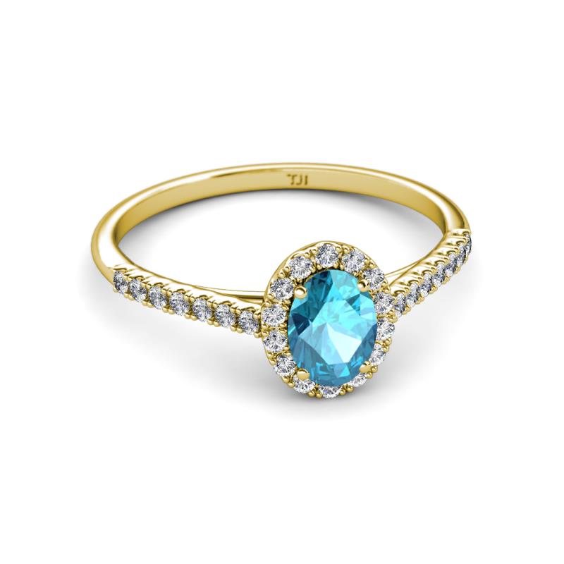 7x5 mm Oval London Blue Topaz and Lab Grown Diamond Halo Engagement Ring 1.42 ctw in 14K Yellow Gold. More Details ...