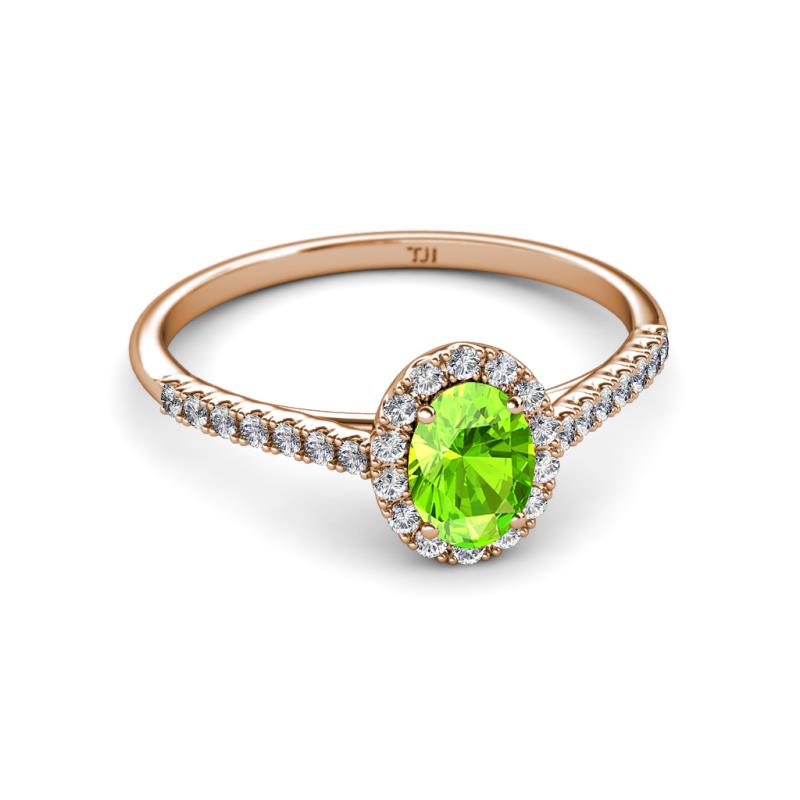 7x5 mm Oval Peridot and Lab Grown Diamond Halo Engagement Ring 1.32 ctw in 18K Rose Gold. More Details ...