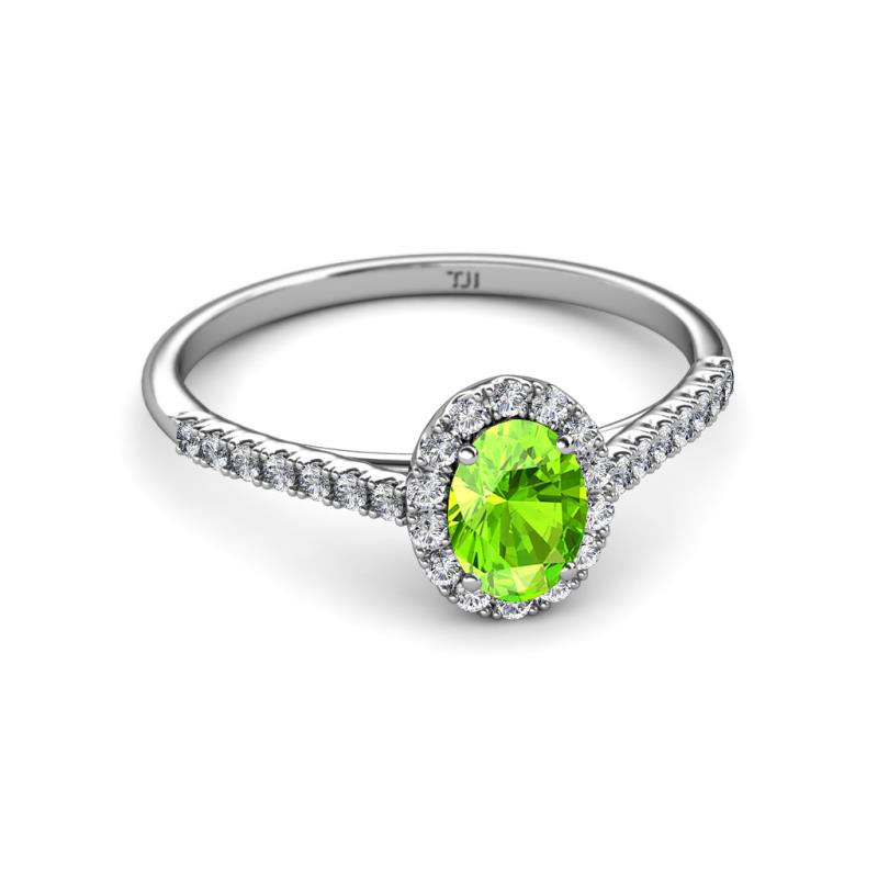 7x5 mm Oval Peridot and Lab Grown Diamond Halo Engagement Ring 1.32 ctw in Platinum. More Details ...