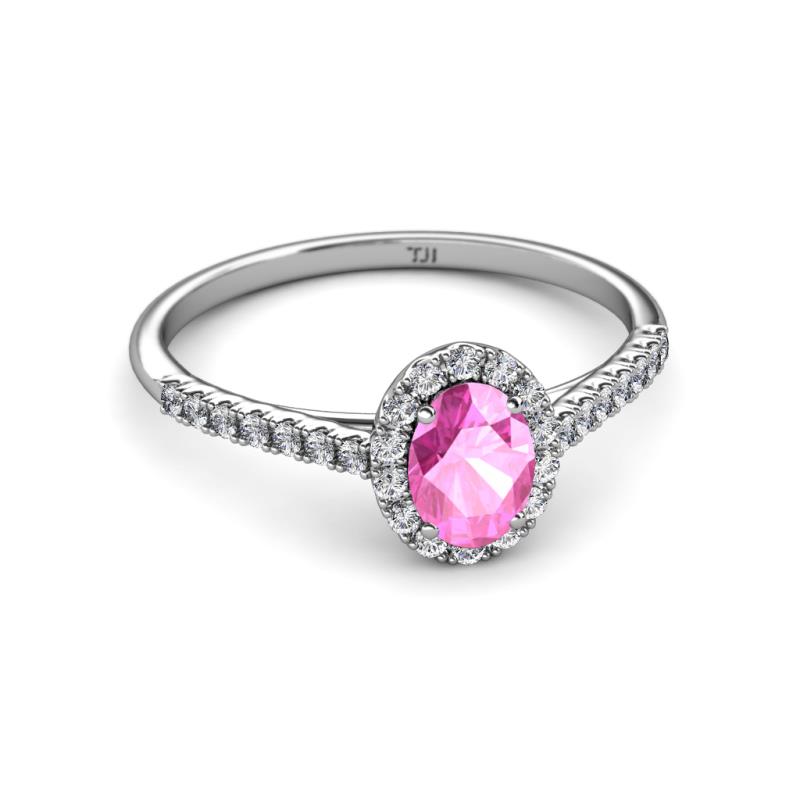 7x5 mm Oval Pink Sapphire and Lab Grown Diamond Halo Engagement Ring 1.42 ctw in 18K White Gold. More Details ...