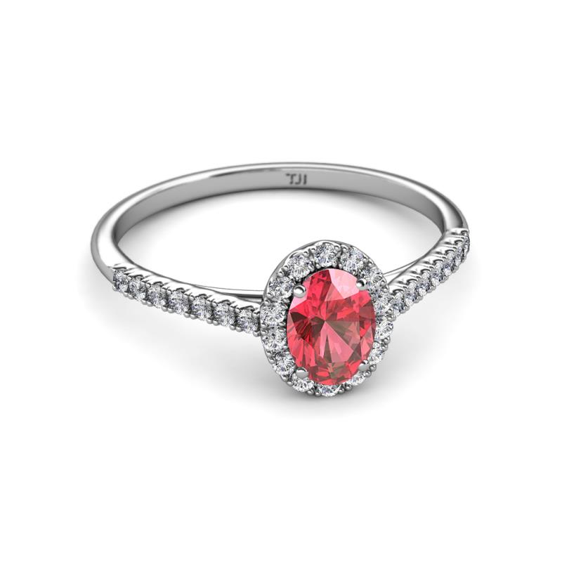7x5 mm Oval Pink Tourmaline and Lab Grown Diamond Halo Engagement Ring 1.27 ctw in 14K White Gold. More Details ...