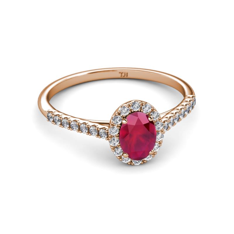 7x5 mm Oval Ruby and Lab Grown Diamond Halo Engagement Ring 1.32 ctw in 18K Rose Gold. More Details ...