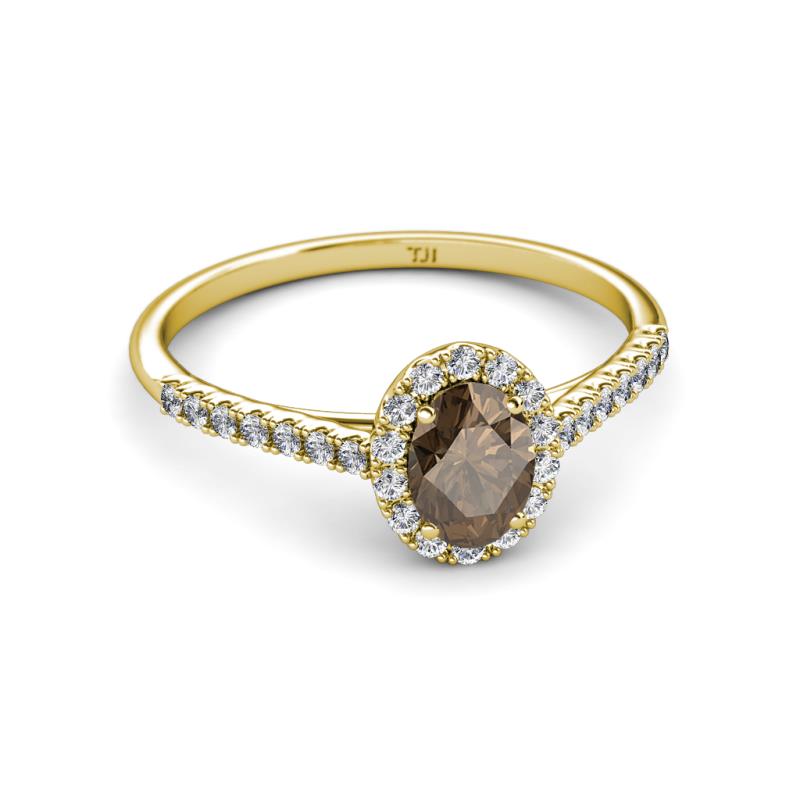 7x5 mm Oval Smoky Quartz and Lab Grown Diamond Halo Engagement Ring 1.17 ctw in 18K Yellow Gold. More Details ...