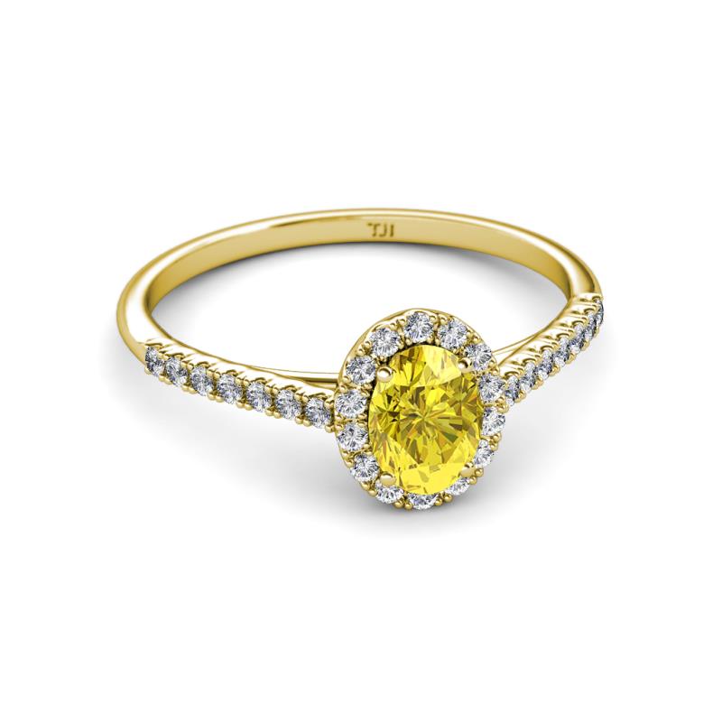 7x5 mm Oval Yellow Sapphire and Lab Grown Diamond Halo Engagement Ring 1.42 ctw in 18K Yellow Gold. More Details ...