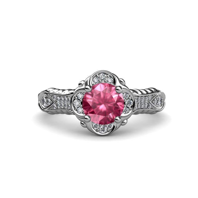 1 1/8 ctw Round Pink Tourmaline and Diamond Floral Womens Halo Engagement Ring 18K White Gold More Details ...