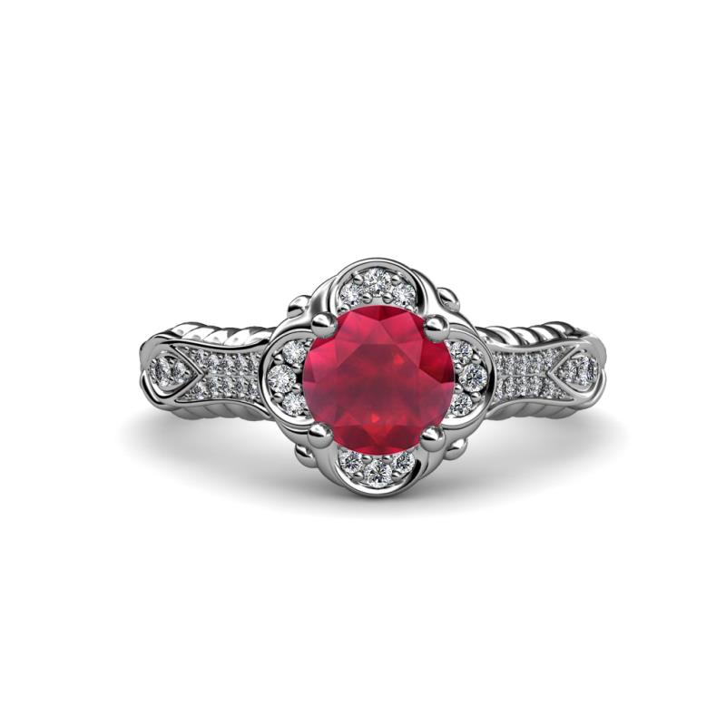 1 1/5 ctw Round Ruby and Diamond Floral Womens Halo Engagement Ring Platinum More Details ...